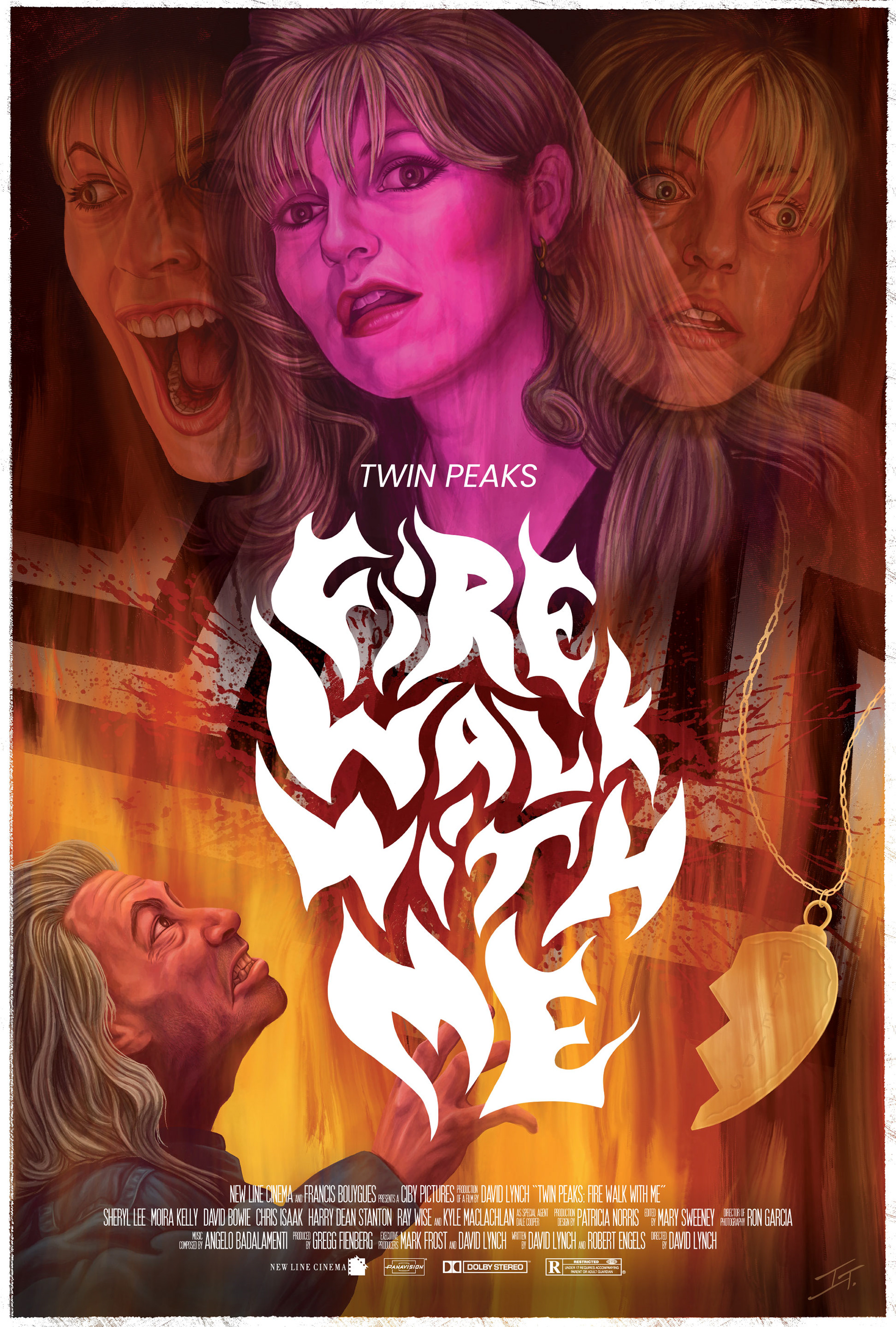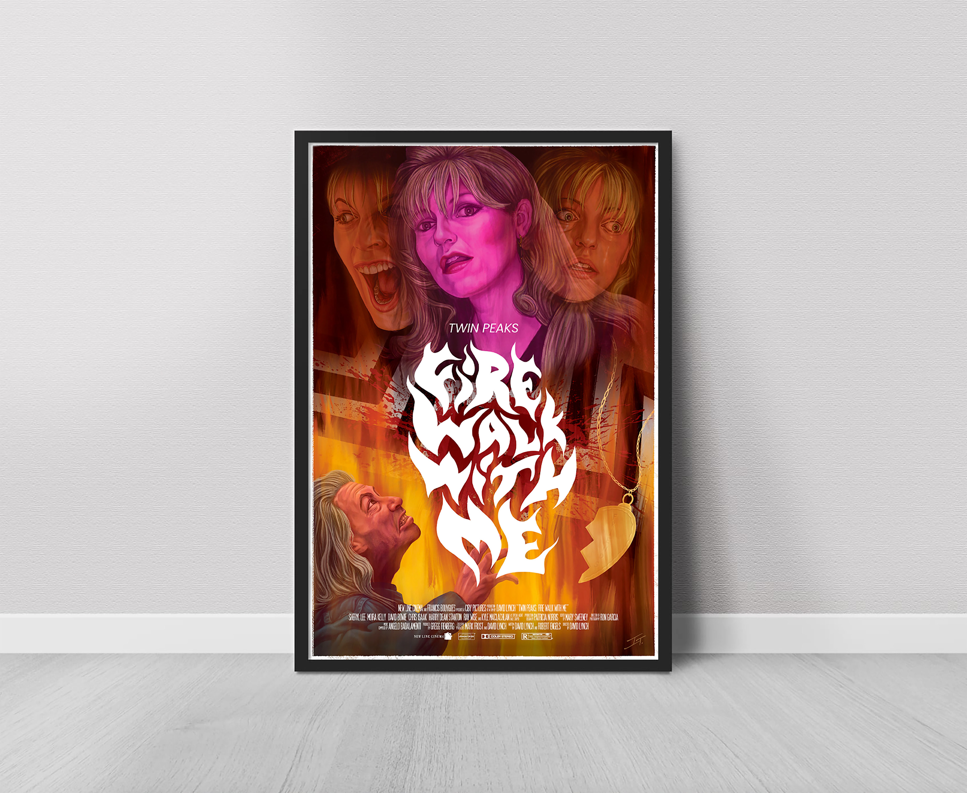 Fan art poster design for David Lynch's Twin Peaks: Fire Walk With Me. Although a very tough watch, I've always felt this to be an underrated masterpiece. It's a bit of a departure from the quirky fun of Twin Peaks since it focuses on the trauma of Laura Palmer during her last days. And because of this, I think it packs more of a punch. I wanted the poster to reflect Laura's inner turmoil, similar to a waking nightmare. With the entity, Bob, clawing his way out of the flames towards Laura.
